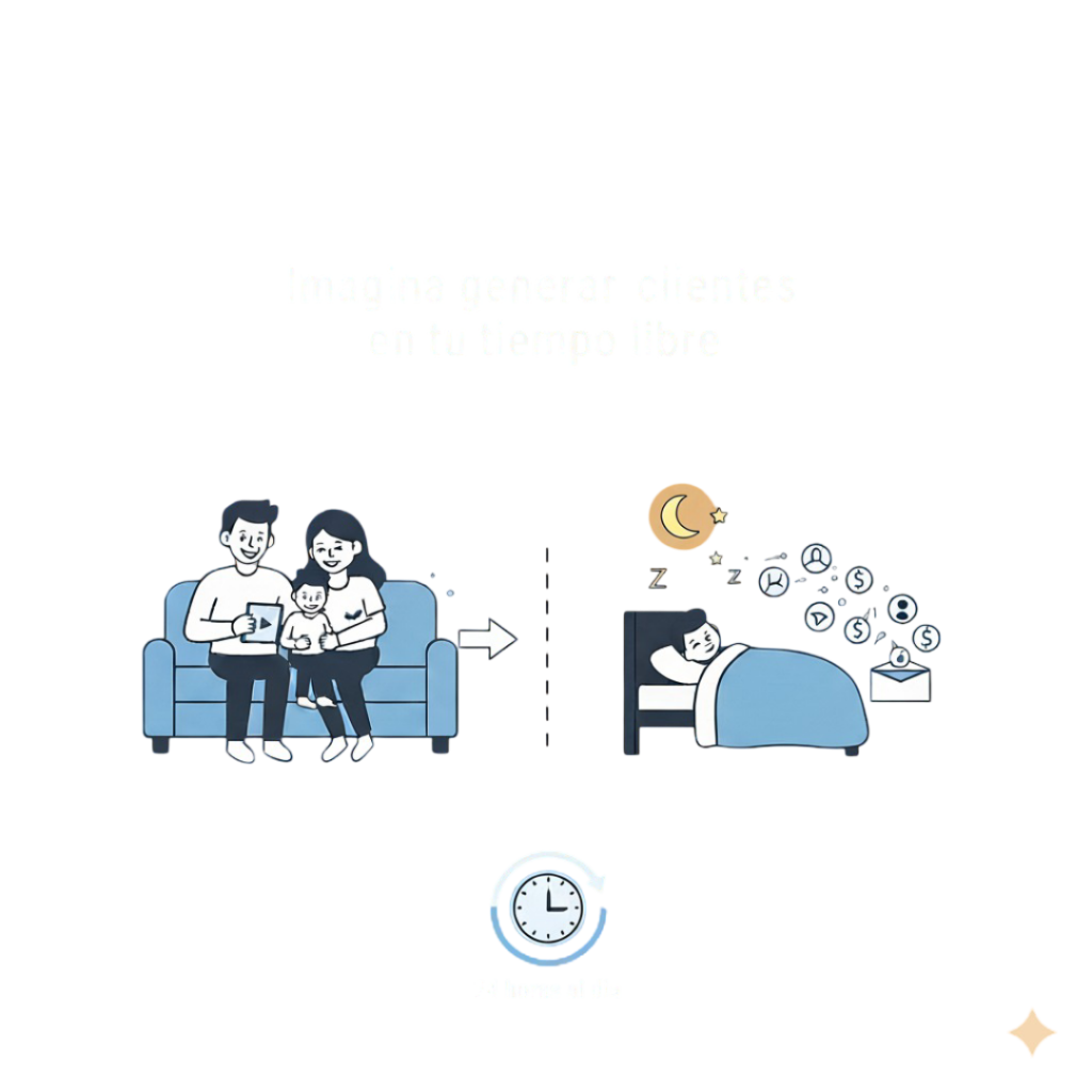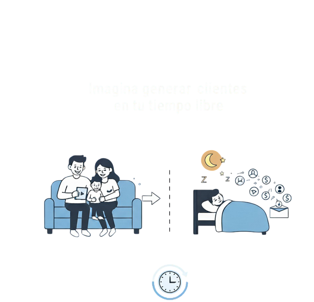 Imagina generar clientes mientras estás con tu familia o incluso mientras duermes, un sistema que trabaja para ti las 24 horas del día y sin tener que invertir más tiempo.